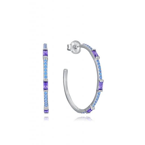 Pendientes Viceroy Elegant de plata de ley bañados en oro, aro con circonitas de colores, con un diámetro de 3,4 cm. Acabado: Brillo / pulido.